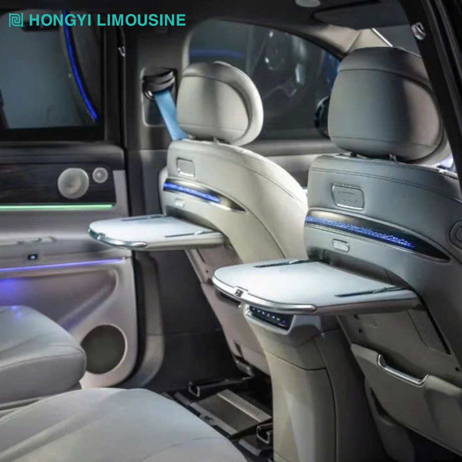 Thiết kế tinh gọn, hiện đại giúp bàn ăn 6.0 dễ dàng tích hợp vào mọi khoang nội thất limousine. Không chỉ mang lại không gian làm việc tiện lợi, sản phẩm còn là điểm nhấn về thẩm mỹ và công năng trên xe.